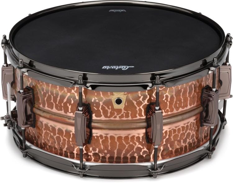 Ludwig Hammered Raw Polished Copper Snare Drum – 6.5 inches x 14 inches, Black Nickel Hardware