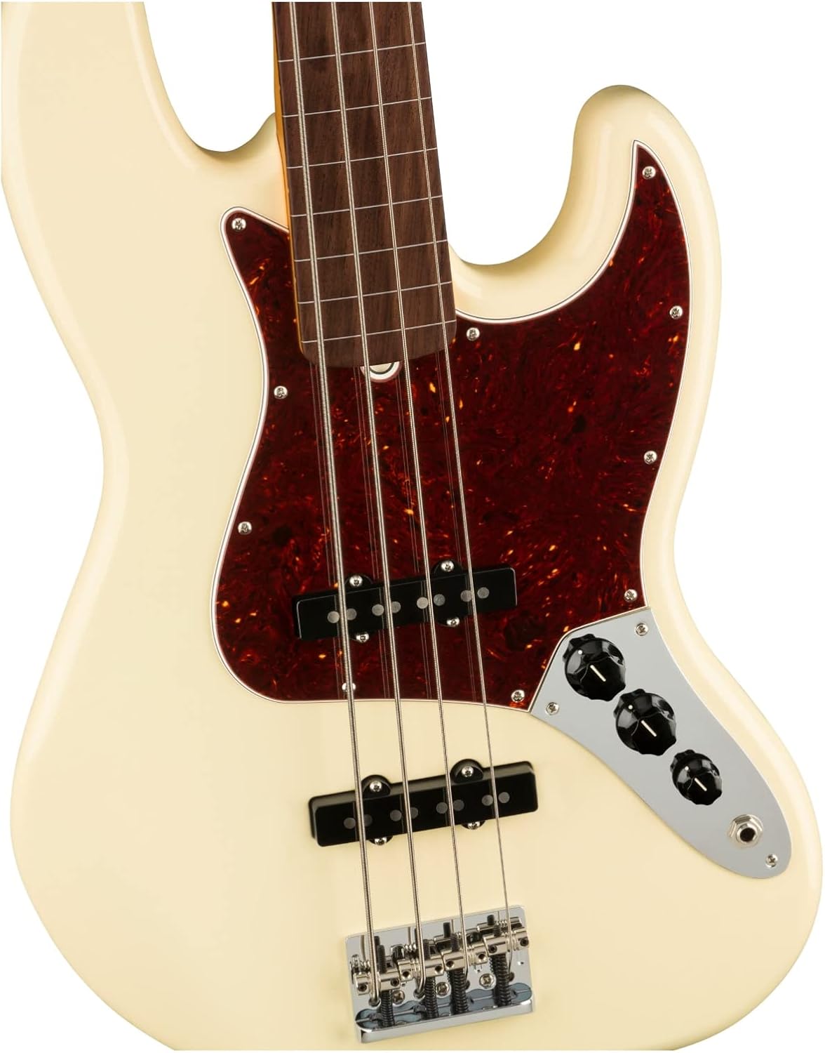 With its Olympic White finish and fretless rosewood fingerboard, this model is built for players who want precise control over articulation and pitch. The fretless design enables fluid slides and expressive phrasing, while the V-Mod II pickups maintain definition and balance across all registers. Its comfortable neck profile and refined contours make extended playing sessions easier, and the instrument responds well to dynamic playing, making it suitable for studio work and more intricate musical styles.