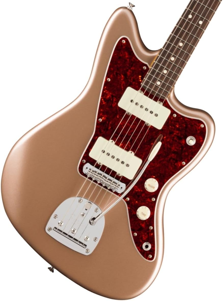 Vintage-inspired Jazzmaster with modern playability, smooth tremolo, and rich, dynamic tone in a sleek Firemist Gold finish.