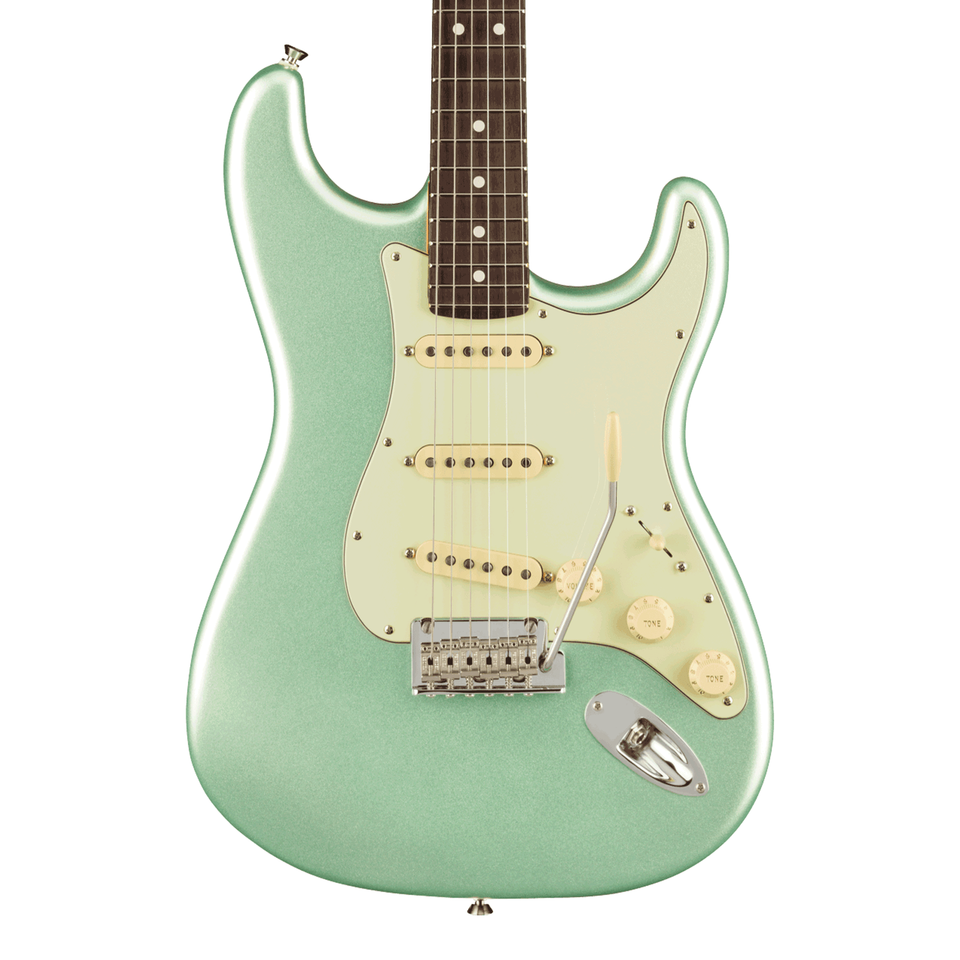The American Professional II Stratocaster draws from more than sixty years of innovation, inspiration and evolution to meet the demands of today’s working player. Our popular Deep “C” neck now sports smooth rolled fingerboard edges, a “Super-Natural” satin finish and a newly sculpted neck heel for a supremely comfortable feel and easy access to the upper register. New V-Mod II Stratocaster single-coil pickups are more articulate than ever while retaining bell-like chime and warmth. An upgraded 2-point tremolo with a cold-rolled steel block increases sustain, clarity and high-end sparkle. The American Pro II Stratocaster delivers instant familiarity and sonic versatility you’ll feel and hear right away, with broad ranging improvements that add up to nothing less than a new standard for professional instruments.