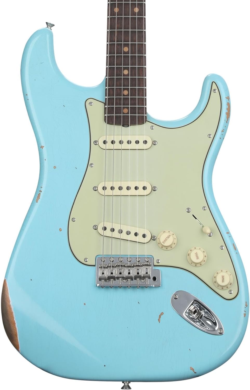 Fender Custom Shop Late-1962 Stratocaster Relic Electric Guitar with Closet Classic Hardware – Faded Aged Daphne Blue