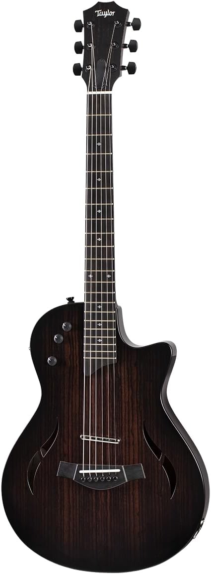 The Taylor T5z Classic Rosewood Hollowbody Electric – Natural blends acoustic warmth with electric versatility in a sleek, beautifully crafted design. Its rosewood top and hollowbody construction deliver rich resonance and a refined natural look, while the compact body and fast, electric-style neck ensure a smooth, comfortable playing experience. Equipped with a versatile three-pickup system and five-way switching, it offers a wide tonal range—from warm acoustic textures to crisp cleans and powerful electric tones—making it an ideal all-in-one guitar for stage, studio, and players who want maximum flexibility without switching instruments.